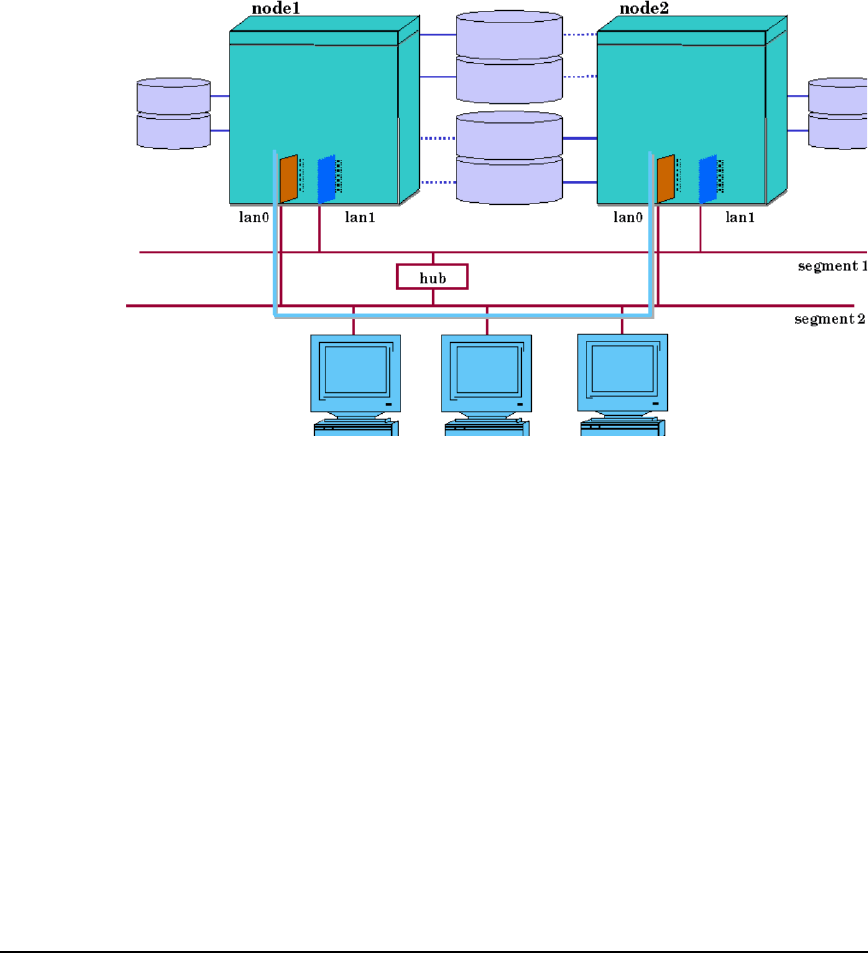 Figure 3-16 shows two nodes connected in one bridged net. LAN