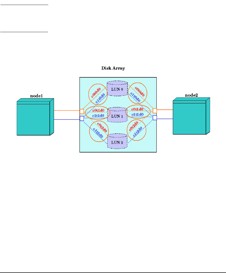 Figure 3-24 shows LUNs configured with multiple paths (links) to