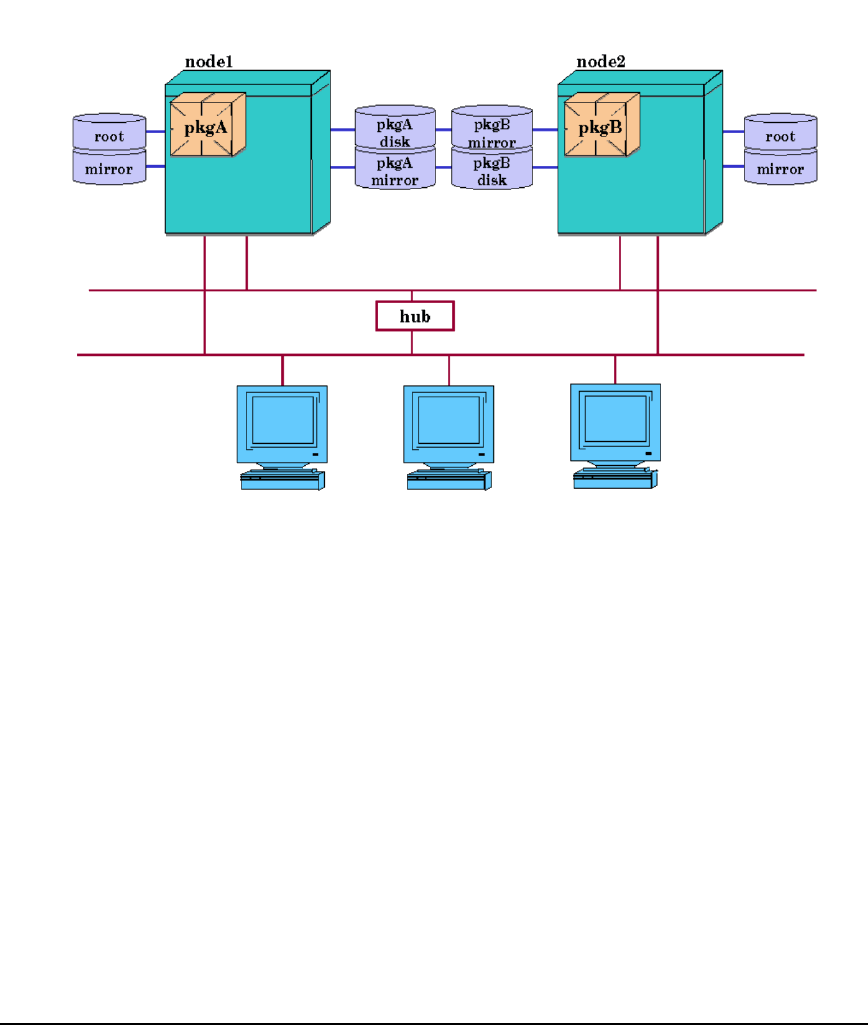 Figure 2-5 Mirrored Disks Connected for High Availability