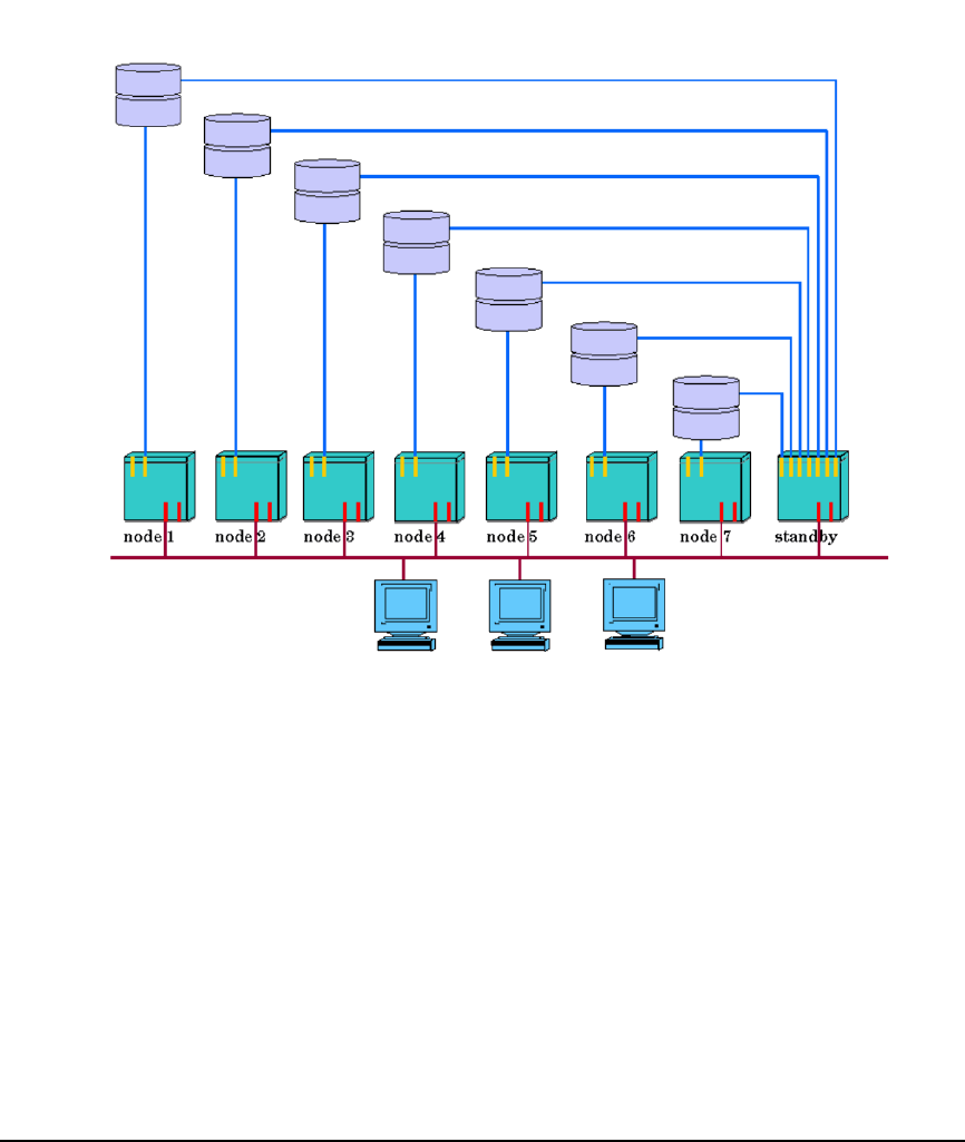 Figure 2-11, a cluster consisting of eight nodes with a Fibre Channel
