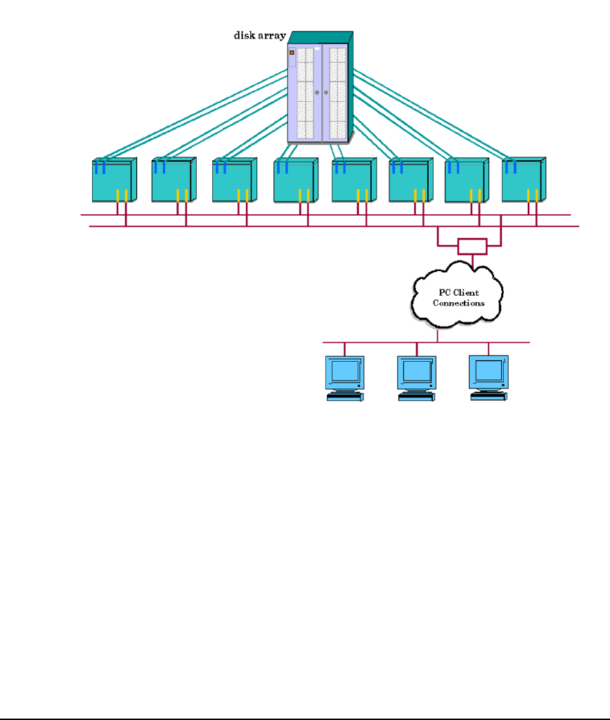 Figure 2-11 Eight-Node Cluster with XP or EMC Disk Array