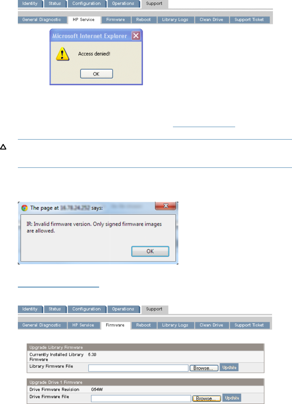 an unsigned firmware image, the RMI displays an invalid firmware version error message:
