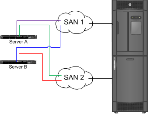 have two different host interface ports that are connected to two different SANs. Each SAN is