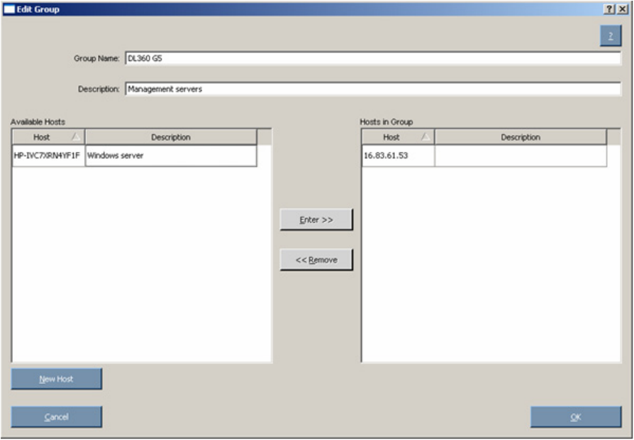 4. Click the Enter and Remove buttons to add or remove hosts as needed.