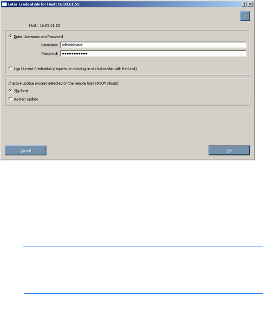 When you select a single remote host, the Enter Credentials for Host screen appears. You must enter your