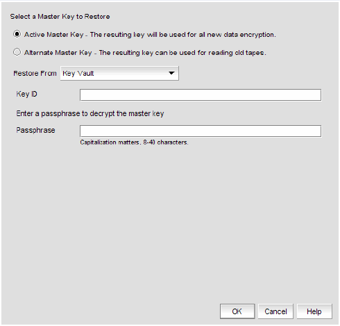 4. Choose the active or alternate master key for restoration, as appropriate.