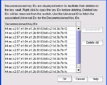 • Delete All button: Deletes all of the listed decommissioned key IDs.