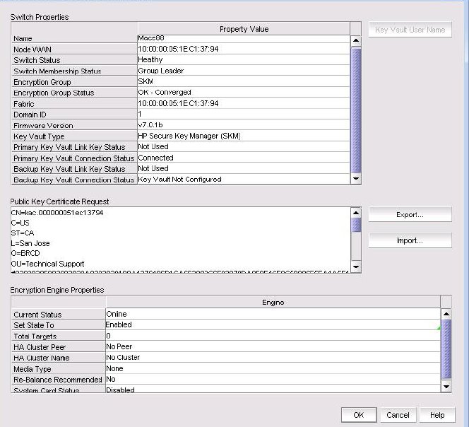 • Encryption Group: The name of the encryption group to which the switch belongs