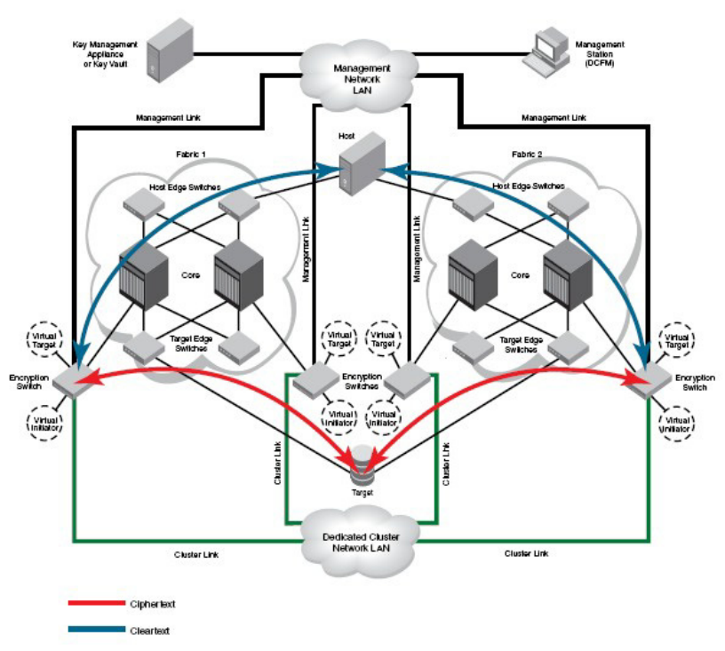 cluster handles the target/host path failover along with the failure of either encryption switch.