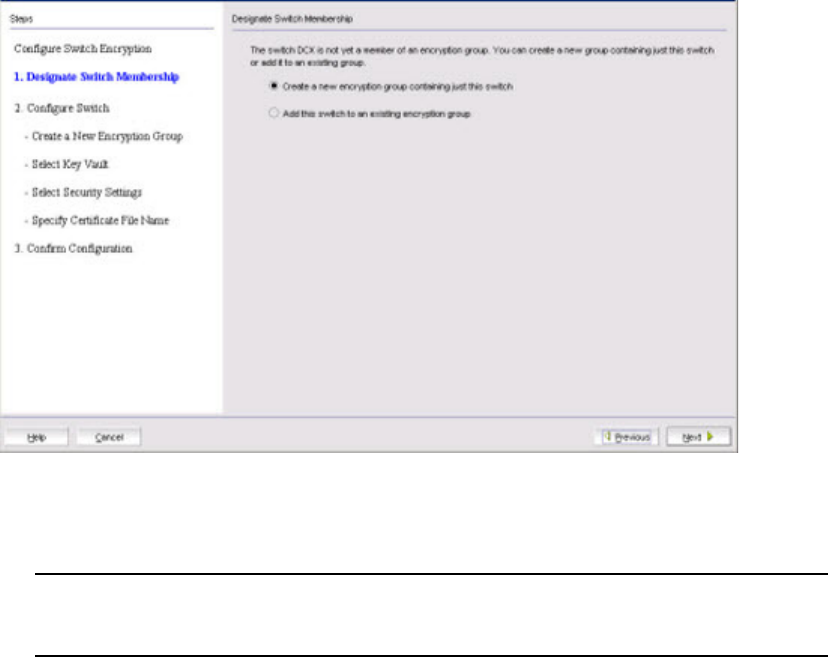 • Add this switch to an existing encryption group: Adds the selected switch to an encryption