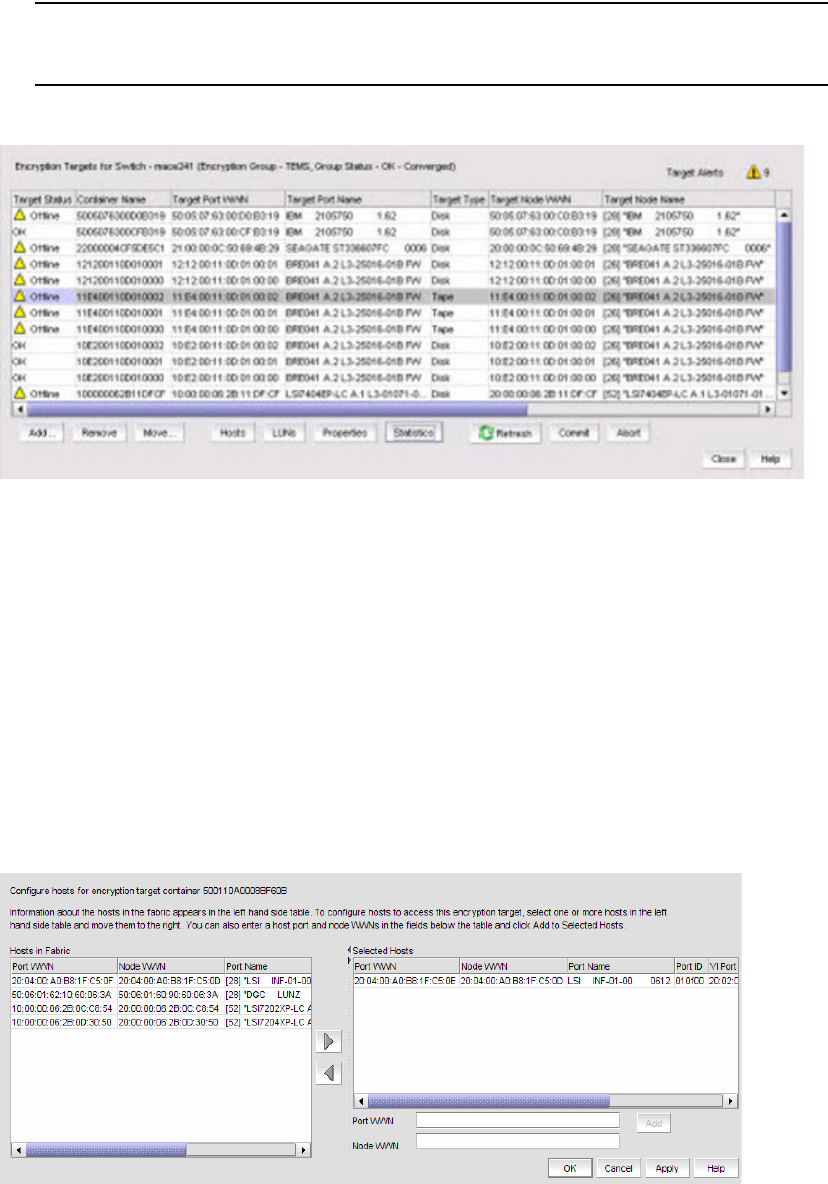 The Encryption Target Hosts dialog box displays (Figure 44). The Hosts in Fabric table lists the