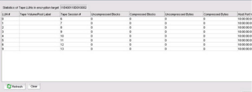 • Click Clear to clear the tape LUN statistics for member LUNs in the container, then click