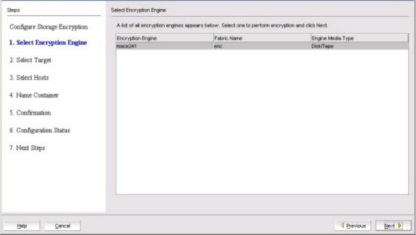 5. Select the encryption engine (blade or switch) to configure, then click Next.