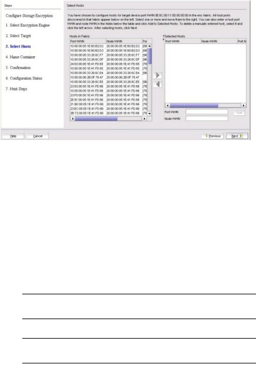 • Host Name: The name of the hosts that are in the same fabric as the encryption engine.