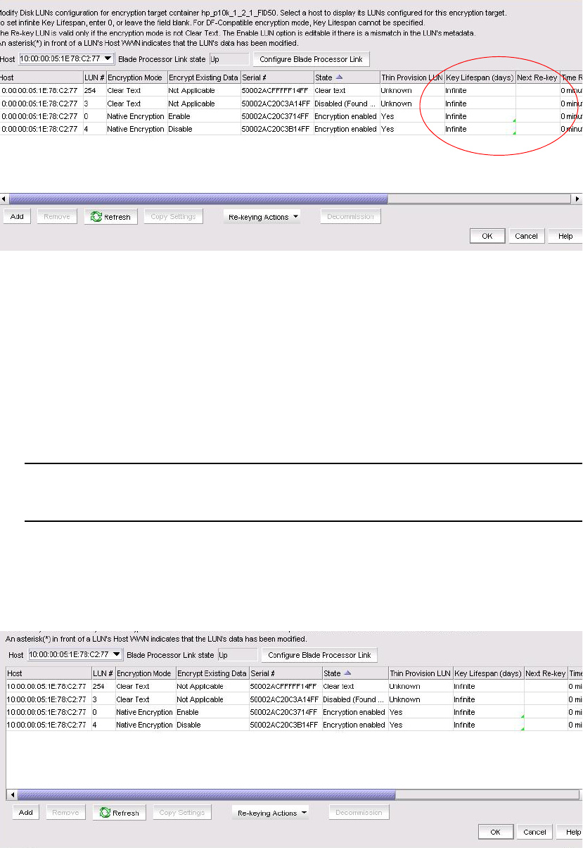 FIGURE 72 Encryption Target Disk LUNs dialog box