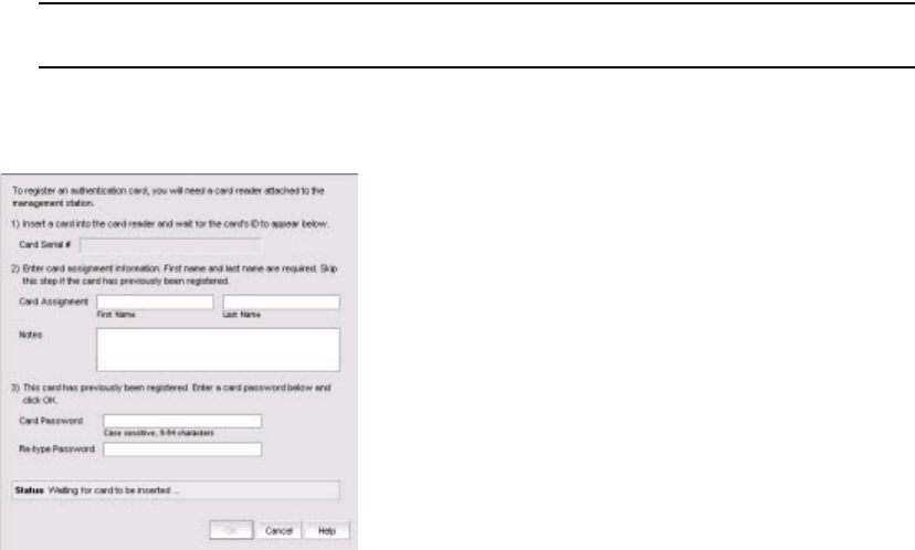 5. Insert a smart card into the card reader. Wait for the card serial number to appear, enter card