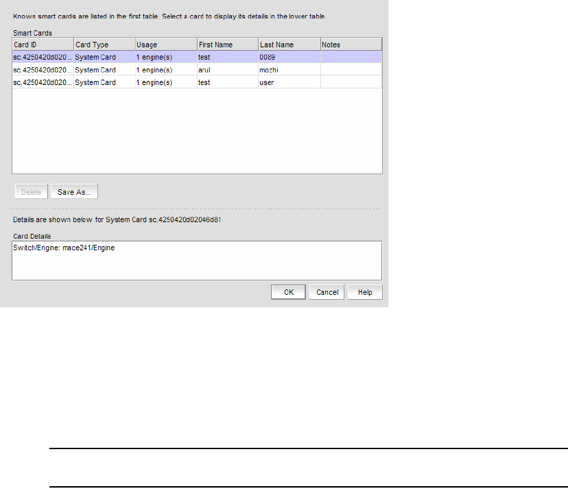 • Click Save As to save the entire list of smart cards to a file. The available formats are