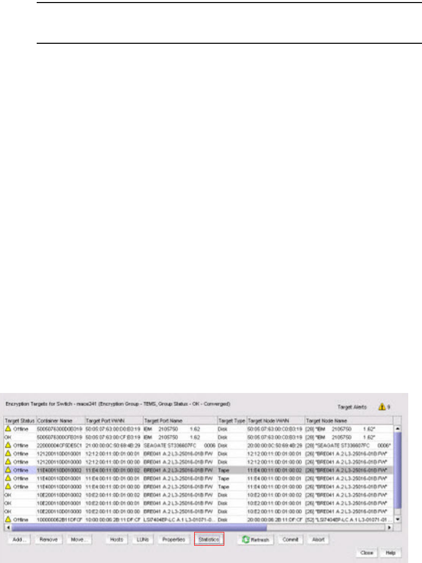 container through the Encryption Targets dialog box, or from the Target Tape LUNs dialog box.