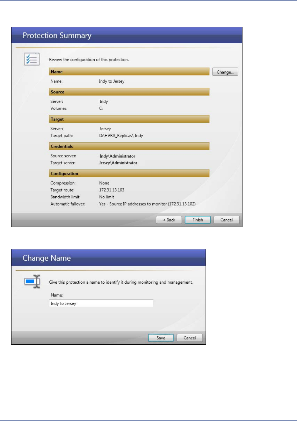 9. (Optional) If you want to change the name of the protection, click the Change button. The