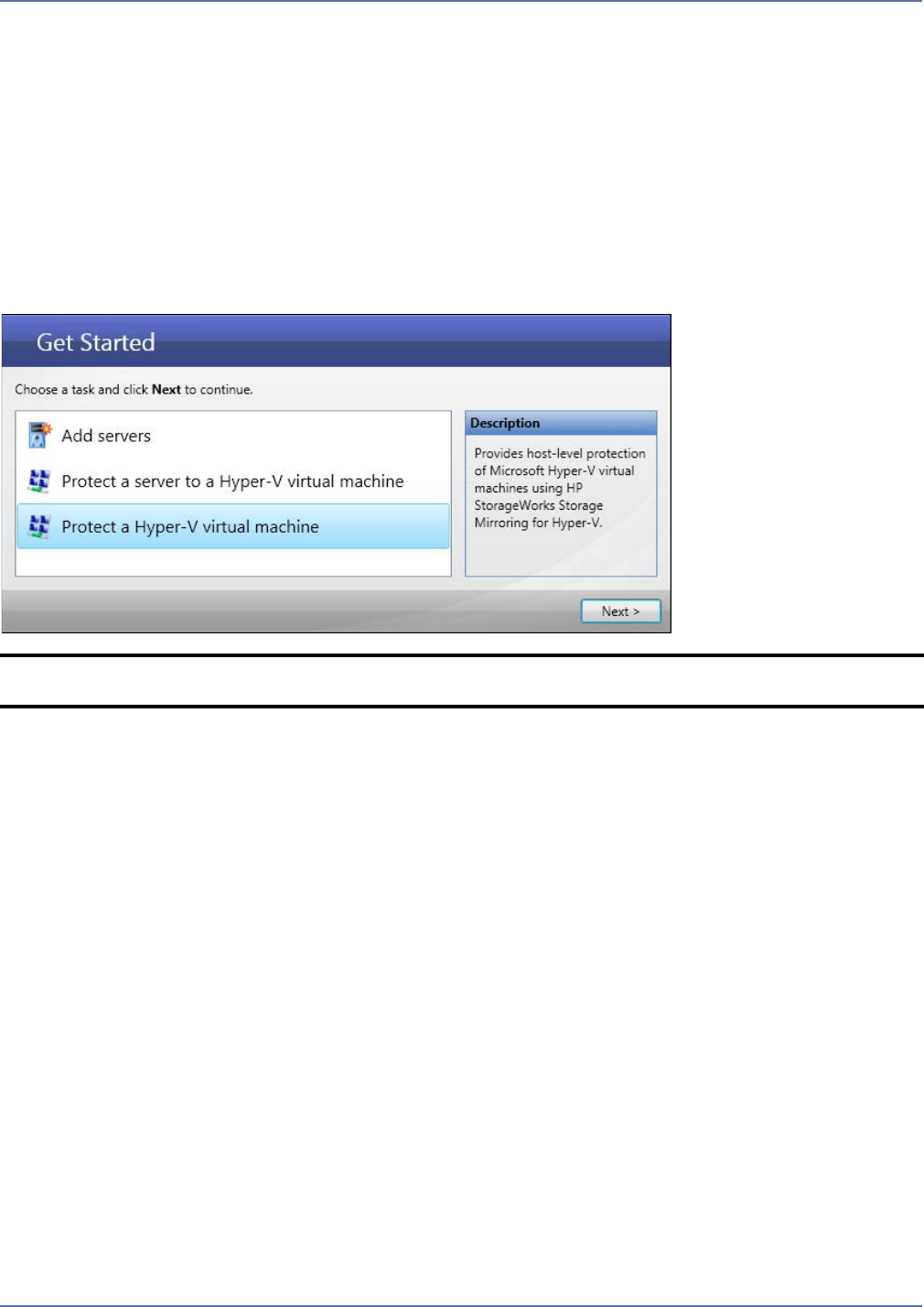 To begin setting up protection for a Hyper-V machine, select Protect a Hyper-V virtual machine,