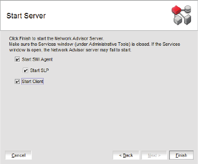 13. Complete the following steps on the Start Server screen.