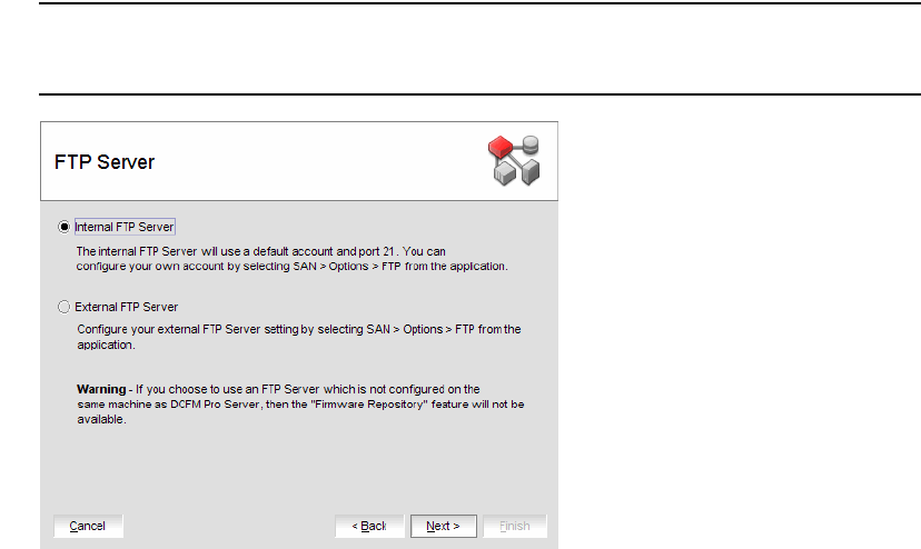9. Select Internal FTP Server or External FTP Server on the FTP Server screen and click Next.