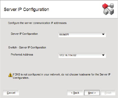 b. Select an address from the Switch - Server IP Configuration Preferred Address list.