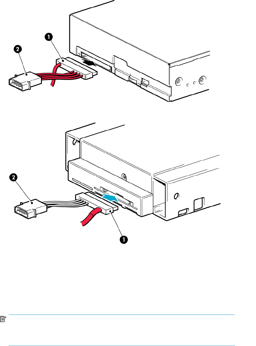 6. Connect the SAS data cable to the tape drive, as illustrated below. Connect a spare power cable
