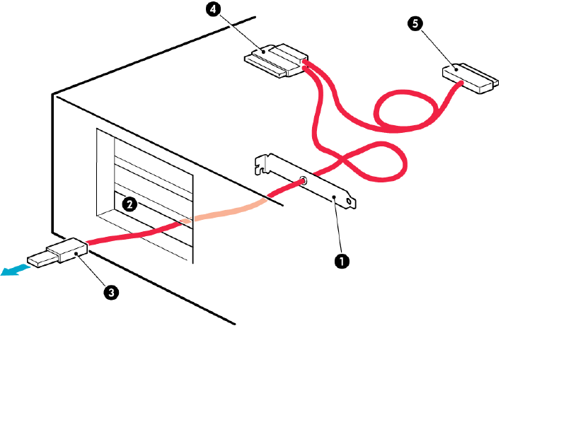 5. Feed the external tape drive connector and cable through the empty slot from the inside of the