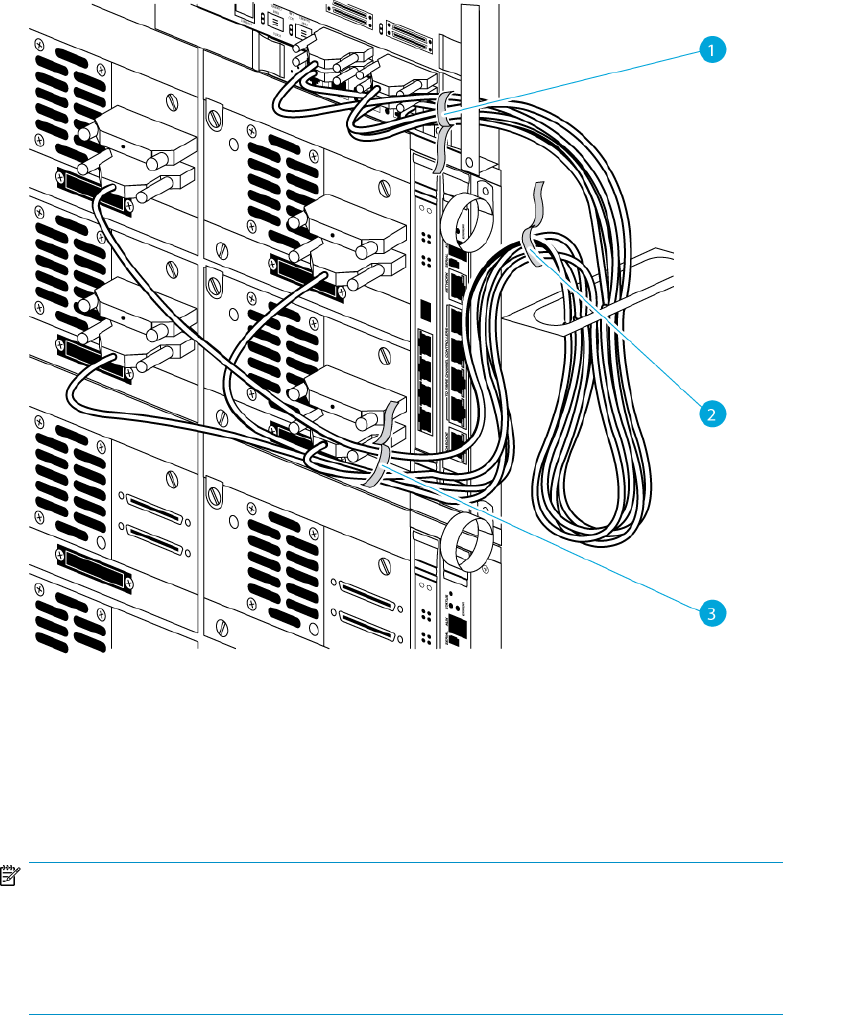 port end of the tape drives. Attach it between the cluster cable clamp and the SCSI ports.