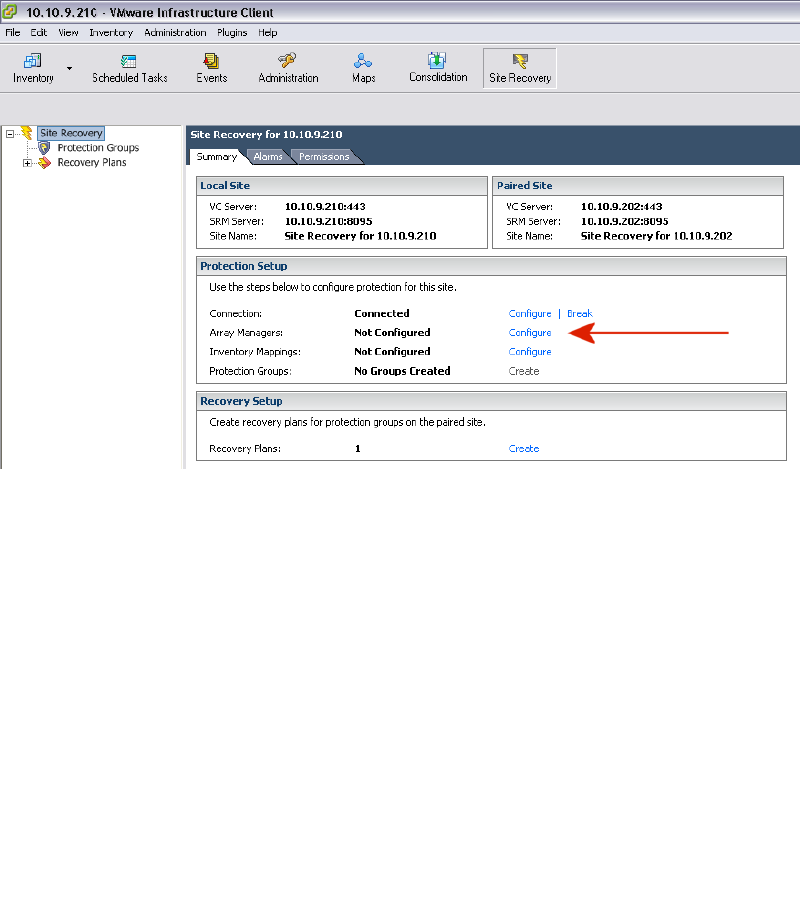You should now pair the protected and recovery sites in SRM. For more information, see the VMware