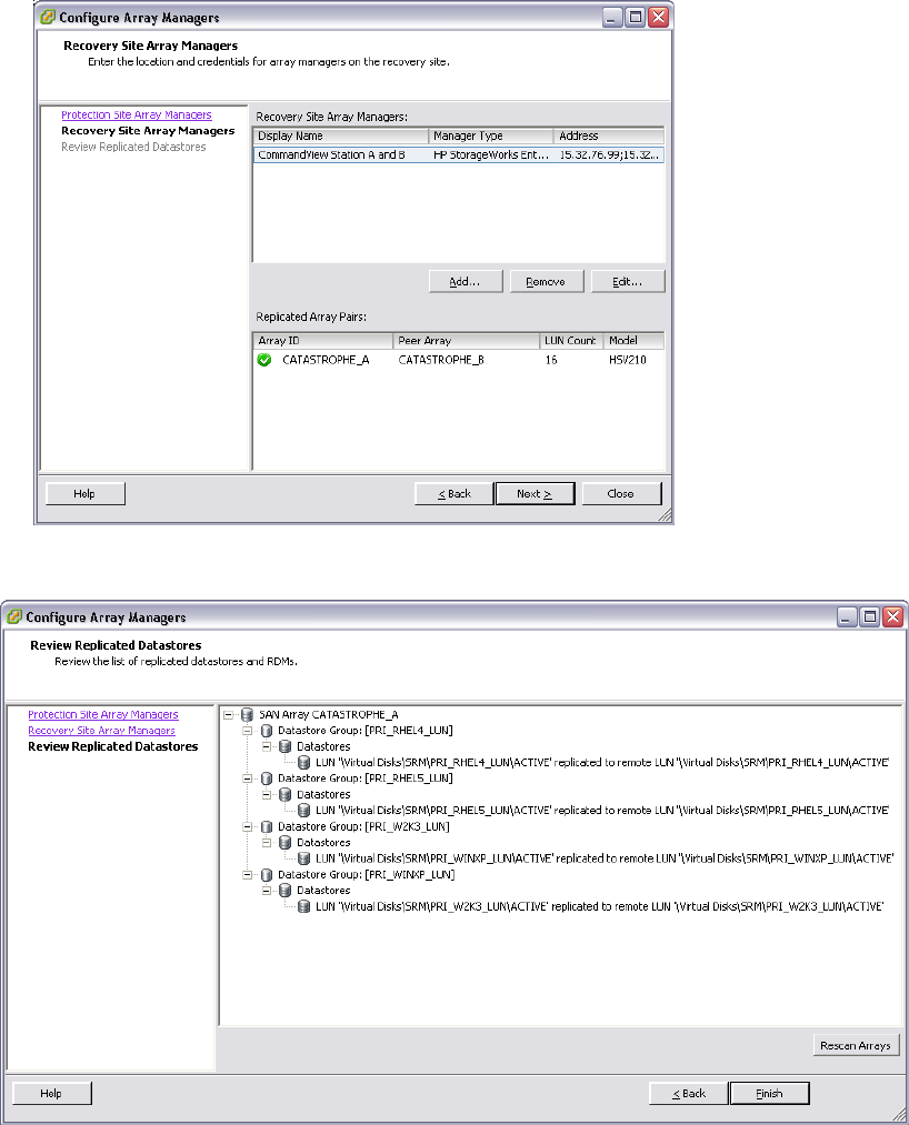 - HP StorageWorks EVA disk arrays do not appear in Site Recovery Manager