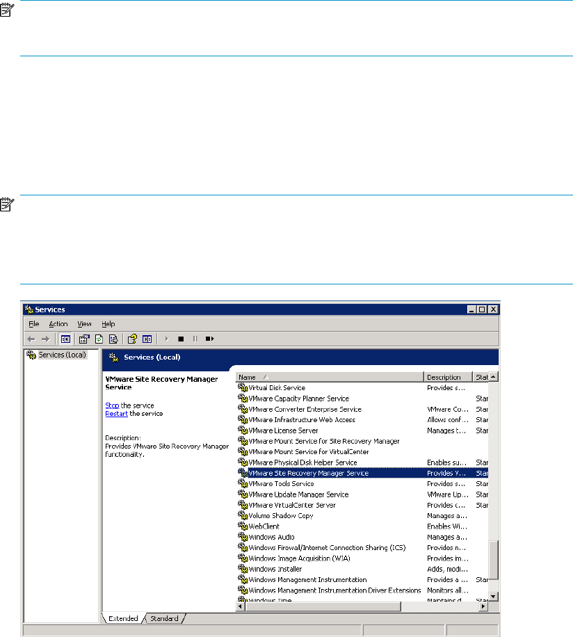 3. Select the VMware Site Recovery Manager Service in the list and click Restart.