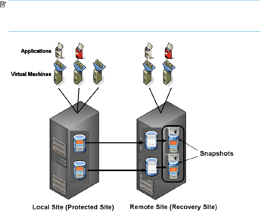 recovered after failure of the local array (via a recovery plan), SRM uses HP StorageWorks EVA
