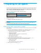 3 Updating the components Perform the following procedures, as needed, to update system components: • • • • • • • Updating Updating Updating Updating Updating Updating Updating the operating system switch firmware HBA firmware SCSI hard drive firmware multipathing software HBA drivers, MPIO components, and the ACU MSA controller firmware Updating the operating system Obtain the needed files and installation instructions from the operating system vendor website or the HP IT Resource Center website: http:/