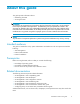 Contents About this guide . . . . . . . . . . . . . . . . . . . . . . . . . . Intended audience . . . . . . . . Prerequisites . . . . . . . . . . Related documentation . . . . . . Document conventions and symbols HP technical support . . . . . . . Customer self repair . . . . . . . Subscription service . . . . . . . HP websites . . . . . . . . . . . Documentation feedback . . . . . . . . . . . . . . . . . . . . . . . . . . . . . . . . . . . . . . . . . . . . . . . . . . . . . . . . . . . . . . . .