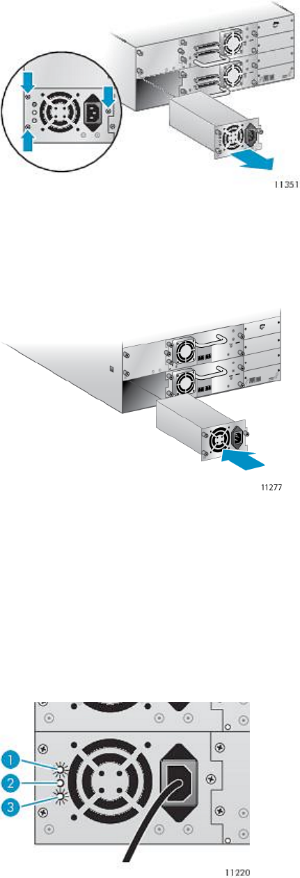 3. Position the new power supply on the alignment rails and slide it into the library until it is flush