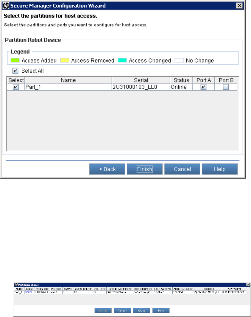 menu to see the Partitions Status dialog. The world wide name for the library controller is