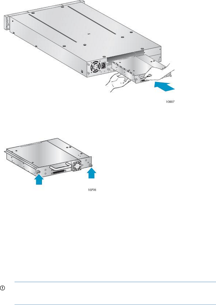 3. Tighten the blue captive screws (see Figure 124 (page 200)) by hand to secure the tape drive