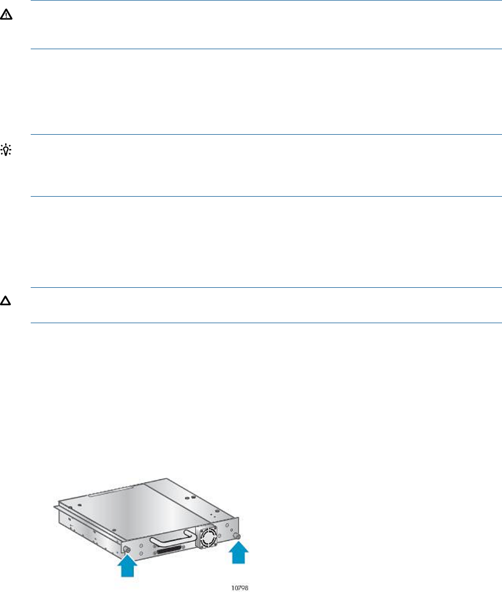 CAUTION: If you cannot remove the tape cartridge from the tape drive, handle the tape drive
