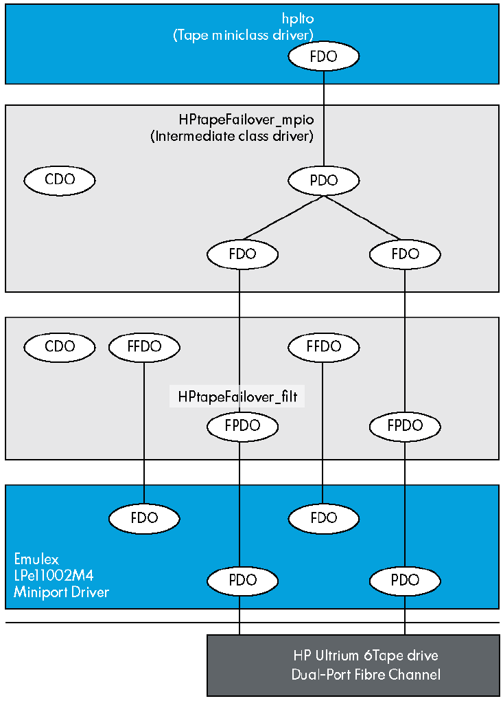 The Windows Device Manager shows the instances of the failover paths which are configured