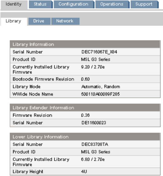 To view detailed information about both Tape Libraries and the Extender, use the RMI Identity >