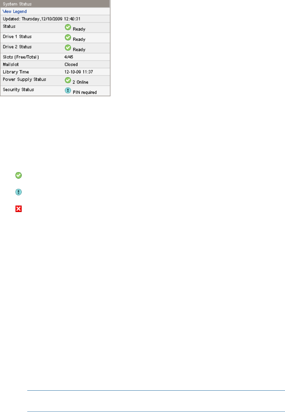 • Status of the library and tape drives