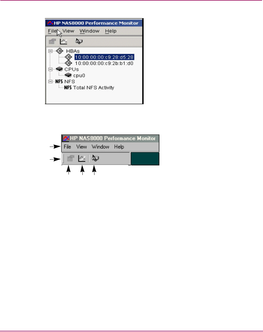 Figure 4: Performance Monitor Window Menu, Metric Actions Toolbar, and Icons