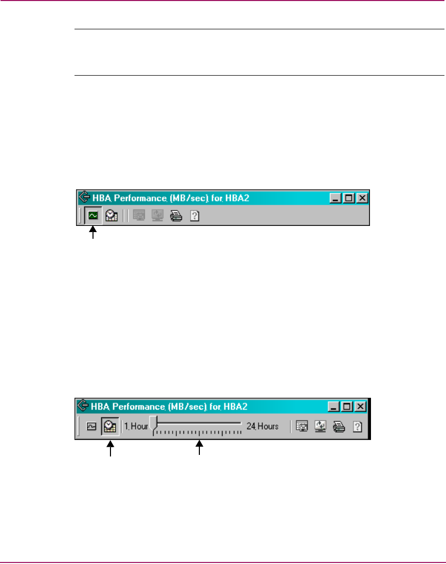 HBA Performance chart tool bar. Use the scroll bar at the bottom of the chart to