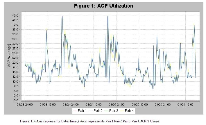 tion report shows in a chart format, the average utilization of the ACP pairs over the entire