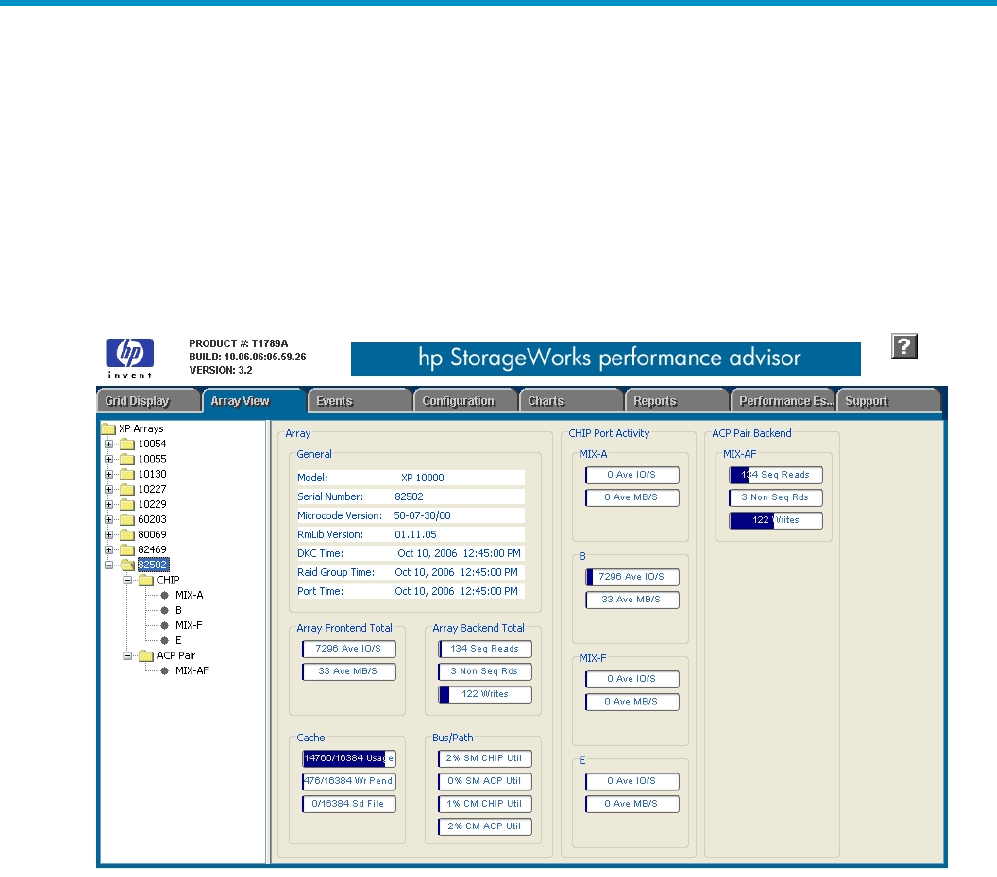 View tr ee on the left side of the screen prov ides a hierarchical view of the XP arrays. Clicking on the