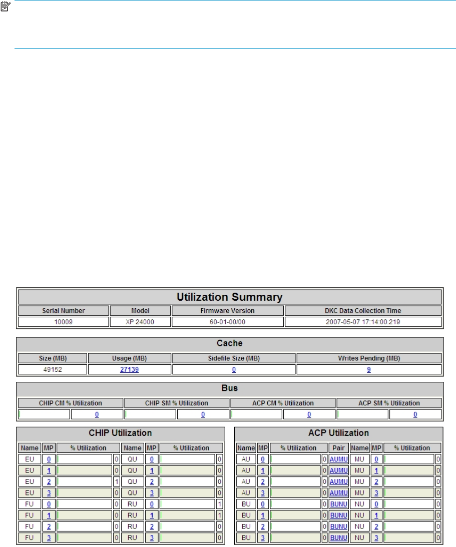Use the Utilization Summary to view a snapshot of array activity for cache usage, bus utilization, CHIP