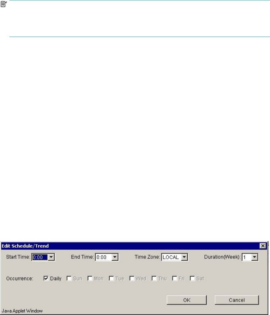 Use the Edit Schedule/Trend dialog box to specify the desired times and duration as shown in Edit