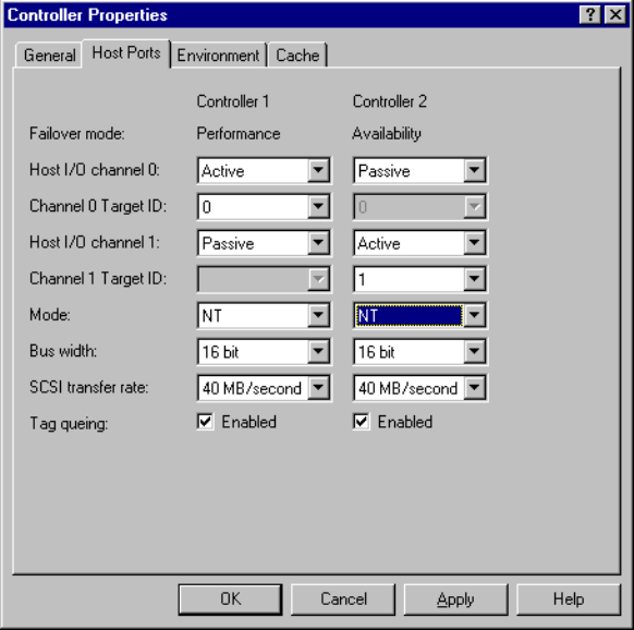 11. Select the Host Ports tab to display the Host Ports property sheet.